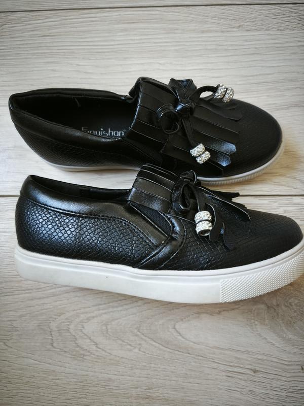 Туфлі мокасини. По обе стороны вставки резиночки, которые позволяют чуточку регулировать подъем. Новые, не ношенные, однако без оригинальной коробки. Стельки не вынимаются. Измеряла 19,5см. Длина внешней подошвы - 21,5см.