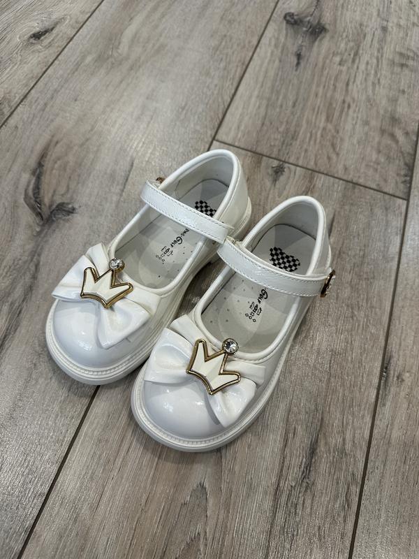 Стан нових, неймовірно гарні та стильні туфельки для справжніх принцеси від фірми clibee Верх-якісна еко шкіра.шкіряна устілку та супінатор. Ліпучка для фіксації Розмір 28, устілка 17,5см Взували один раз