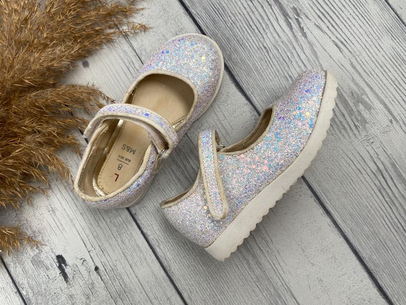 Блестящие нежные туфельки на девочку от M&S 25 размер ( по стелькеи15-15,5 см) UK 8