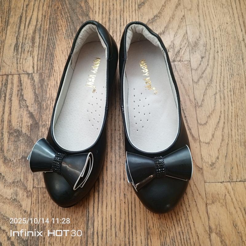 Стильные туфли для девочек от украинского производителя. Размер 34. С бантом и стразами. В середине натуральная кожа.