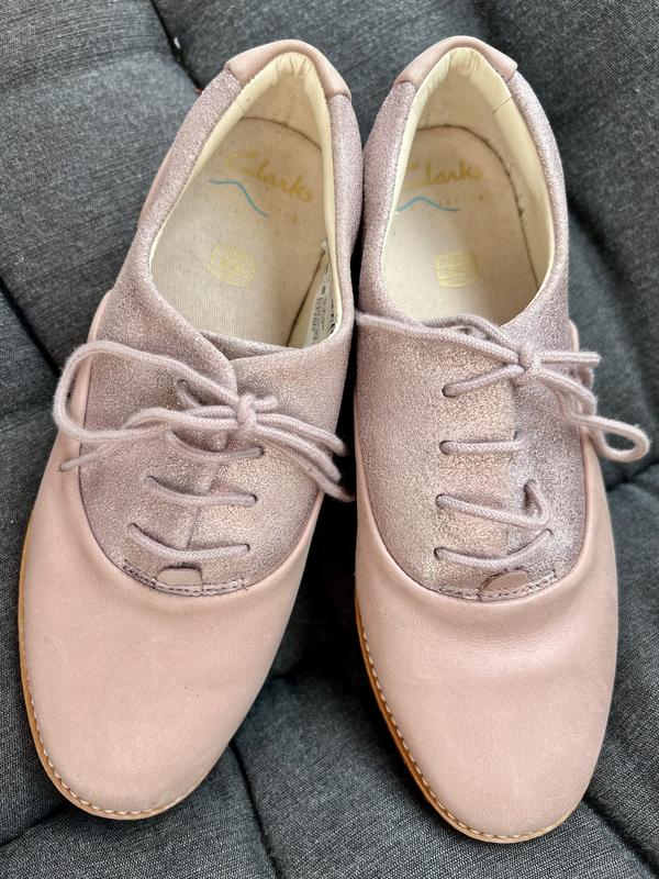 Гарні шкіряні туфельки для дівчинки британського бренду Clarks Розмір по бірці 13.5, що відповідає нашому 32-33 Нам виявились замаленьки нажаль Нові сток