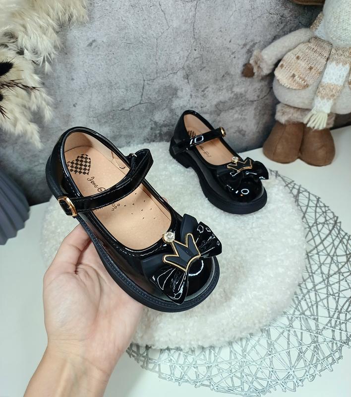 Очень хороши туфельки для девушек из новой коллекции. Изготовлено для настоящих принцесс. Верх - качественная лакированная эко-кожа. Стелька кожаная с супинатором. Фиксация липучкой. Задник твердый. Очень легкие и удобные, гибкая подошва. На ножке смотрятся идеально. Рекомендований запас +-0,5см. Размеры: 28 - 17,8 см 29 - 18,4 см 30 - 19,0 см