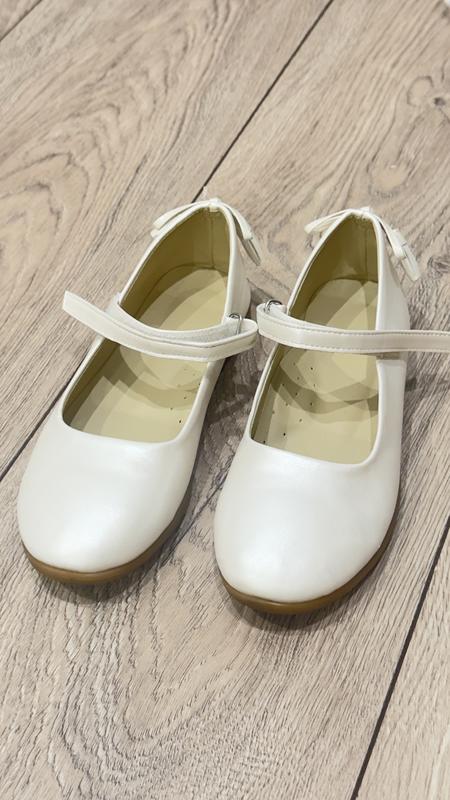 Чудові білі туфлі на дівчинку в гарному стані. Є один дефект, який показала на фото, він дуже маленький і на ніжці його не помітиш. Є супінатор. Довжина по стельці - 18,5 см