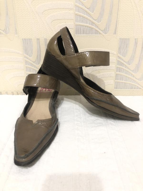 Туфлі шкіряні б в ідеальний стан Фото реальні Цілі все працює На липучці ( працює) Колір гірчиця Лакові Шикарні Може бути на вихід Може бути на щодень Питання ставте до оформлення замовлення