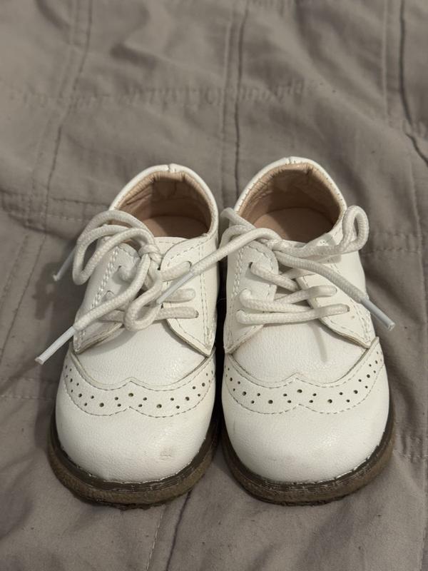 Туфельки белые для девочки 21 г. белые, очень мягкие, соответственно комфортные. Бренд MG BABY. Оягнуты 2 раза, как новые. На одной из туфлек на носике есть незначительное потертое едва заметное. На фото зафиксировала.