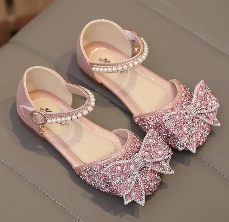Блискучі туфлі з бантиком з кристалами та перлами, що регулюються, - блискучі туфлі з круглим носком для вечірок, підходять для весіль, днів народжень, повсякденних прогулянок. Устілка - 18 см
