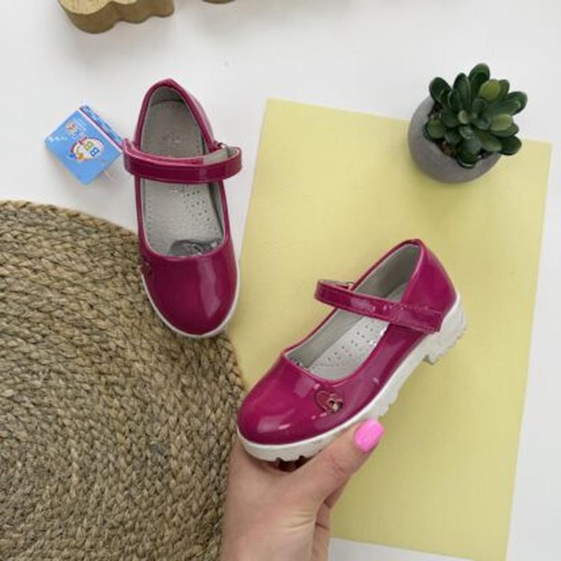 Туфельки для девочек удобные, легкие, стильные! Верх - лак, экокожа. Стелька - кожа,супинатор. Подошва - резина. Удобная застежка - липучка. Замеры стельки: 29 - 17,1 30 - 18,0 31 - 18,3