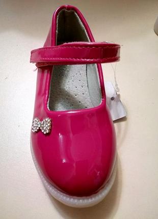 Характеристики товара: Размер 21 22 23 24 Тип Открытые Торговая марка BBT Стелька (см) 12 12.5 13 13.5 Материал верх Искусст. кожа Цвет Розовый Туфли дев. с мигающей и светящейся подошвой. Цвет фуксия. Лакированый кожзаменитель, на липучке, с кожаной стелькой с супинатором. Китайской фабрики BBT Верх- искусст. кожа Внутри- искусст. кожа В наличии размеры 21, 22, 23, 24, 24. Оплата : 1) 100% на карту Приват 2) Безопасная оплата Шафа Отправка в течении суток