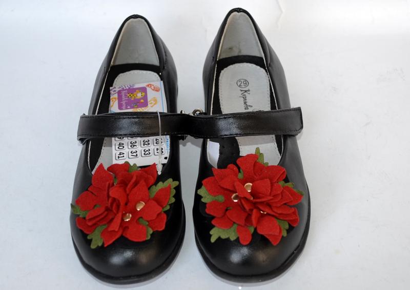 Туфли для девочек ТМ B&G "Королева Красоты" материал верха - искусственная кожа. материал стельки - натуральная кожа. Цветок зафиксирован заклепками. 28р (17,8см)