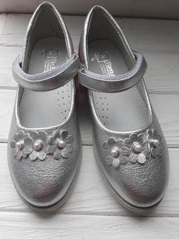 Туфлі ТОММ 5282B святкові ромашки silver 23-32 верх - штучна шкіра Устілка шкіряна, супінатор. 23 по устілці 15см 24 по устілці 16 см