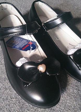 Чорні туфлі 32 р, по устілці 20 см, устілка шкіра. Застібка-липучка.