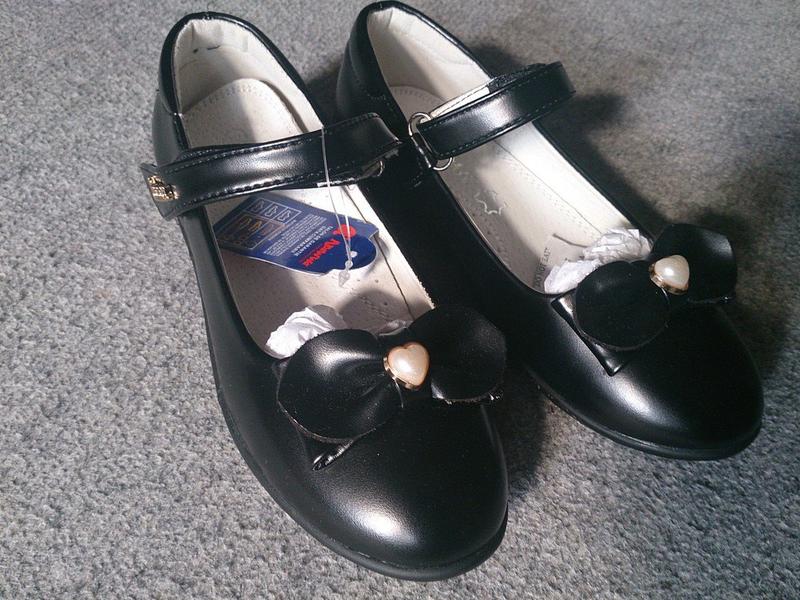 Чёрные туфли 32 р, по стельке 20 см, стелька кожа. Застёжка-липучка.