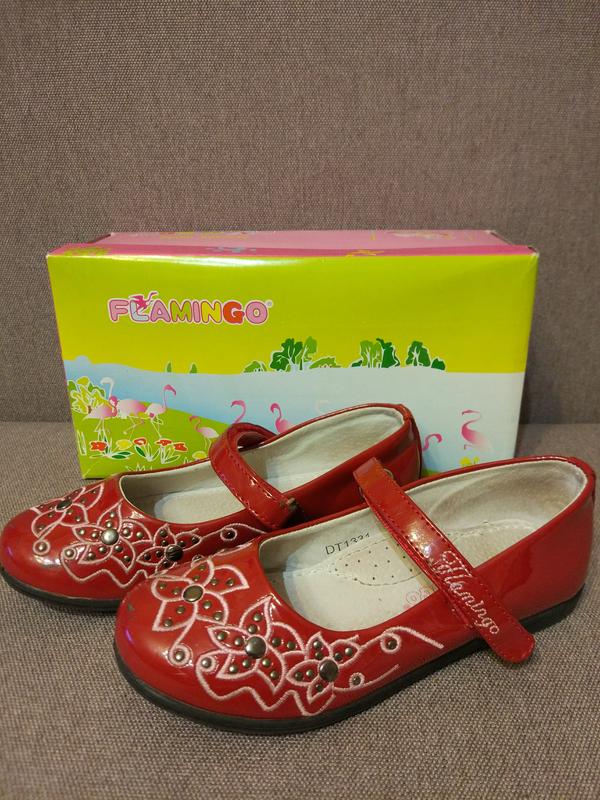 Туфли их для девочки 6-7 лет торговой марки Фламинго. Длина стельки-18,5 см. Лаковые кожаные туфли, внутренний материал стельки и подкладка - натуральная кожа. На стельке есть супинатор. Задник средней жесткости. Носили мало, але в перший же день трохи стерли носок.. Отпрашиваю Укр-почтой или Новой почтой.