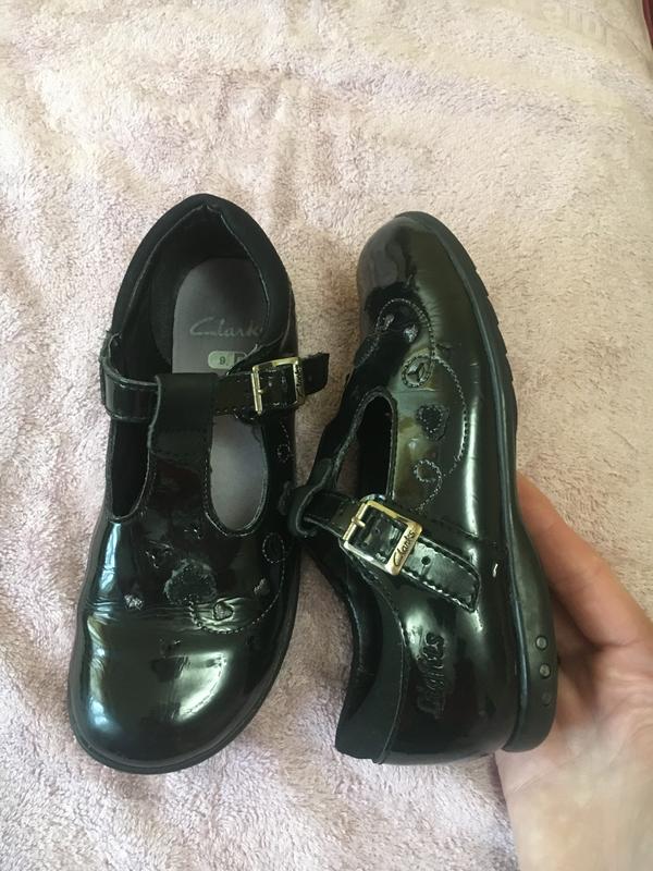 Туфельки фірма Clarks, лакові, дуже зручні, підошва світиться при ходьбі, розмір вказано 9, повнота F. Довжина стельки є на фото