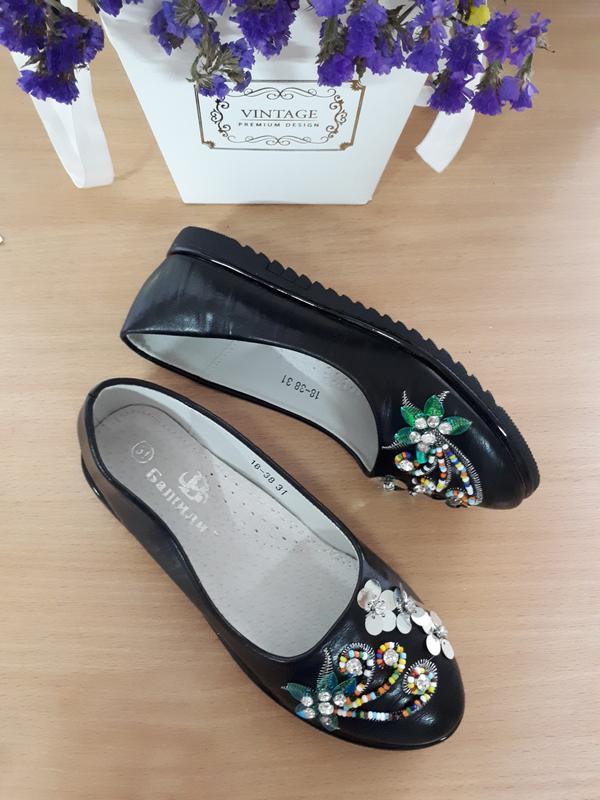 Туфлі з якісної штучної шкіри. Устілка шкіряна з супінатором. Розміри: 30р - 19,5 см; 32р - 20,5 см; 34р - 21,5 см; 36р - 22,5 см; 37р - 23см.