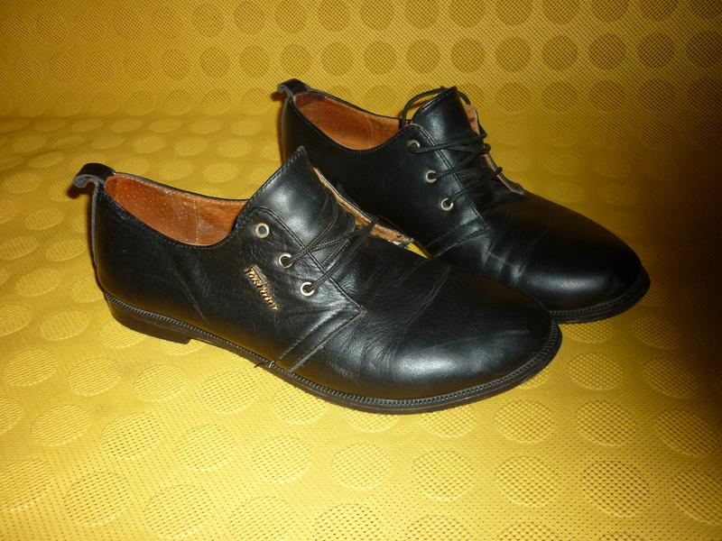 Кожаные туфли ULTRA MODA на девочку 36 размер, длина стельки 23,5см. Туфельки из добротной натуральной кожи, внутри также натуральная кожа. Обувались мало, носила племянница в школу, но умудрилась сделать царапину ( на фото показала) и немного рассторочился шов возле шнуровки- нужно подшить( на фото тоже показала). На фото без крема и т.п.