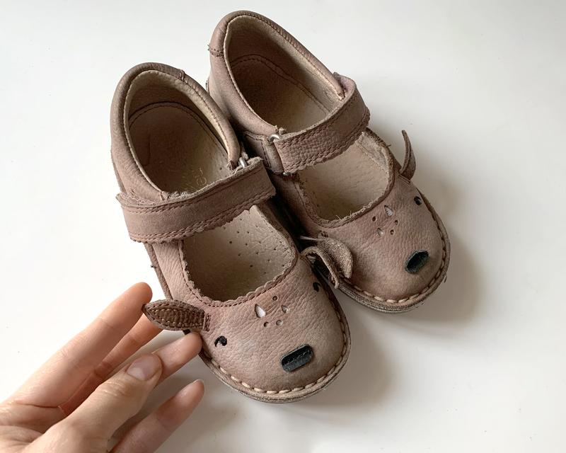 Самые красивые туфли, которые я когда либо видела. Кожаные и внутри и снаружи, такие приятные на ощупь и очень удобные — никогда ребенок не жаловался на то, что трут и тд. Немножко сбились носочки, но выглядят очень хорошо, добротно. С джинсами, и платьями ♡ Размер 8, примерно 27, 16.5 см. по стельке
