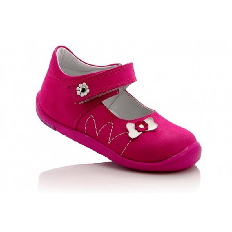 Туфлі для дівчинки від Woopy orthopedic рожевого кольору з невеликою біленькою квіточкою. Туфлі виготовлені з натуральної шкіри, мають високу тверду п'яту і супінатор. Для зручності одягання спереду передбачена липучка. В наявності розмір 22 - 14 см