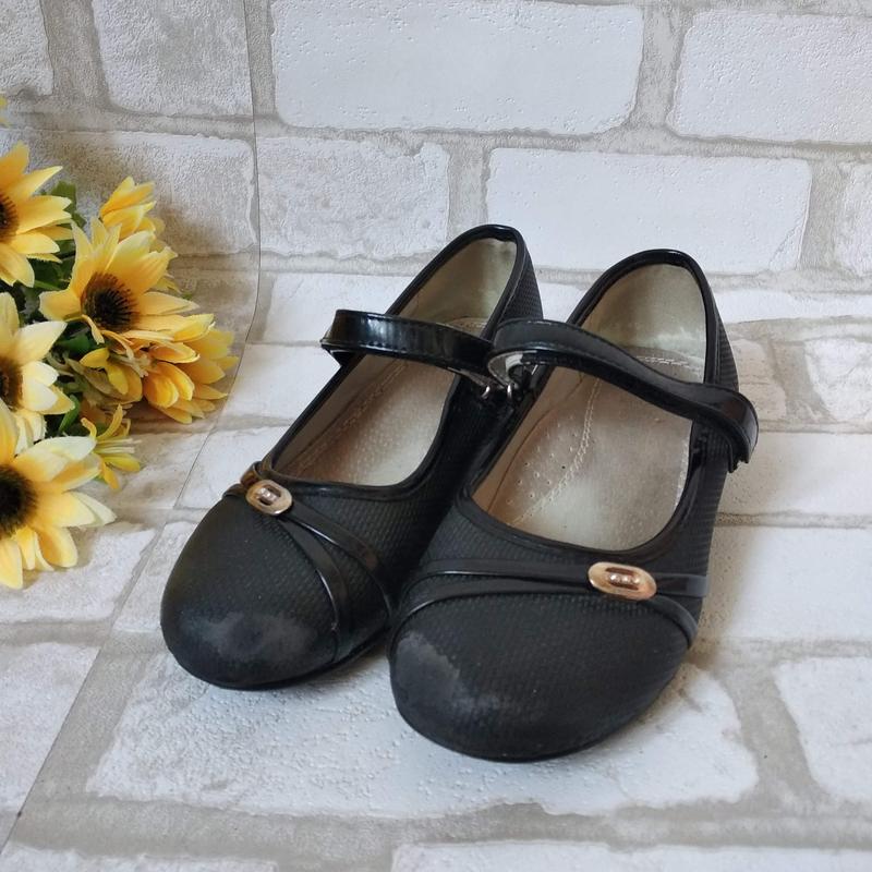 Туфли на девочку черные с ремешком в хорошем состоянии,немного сбиты носки,можно накремить(при носке не видно) Размер 32,по стельке 19,5 см