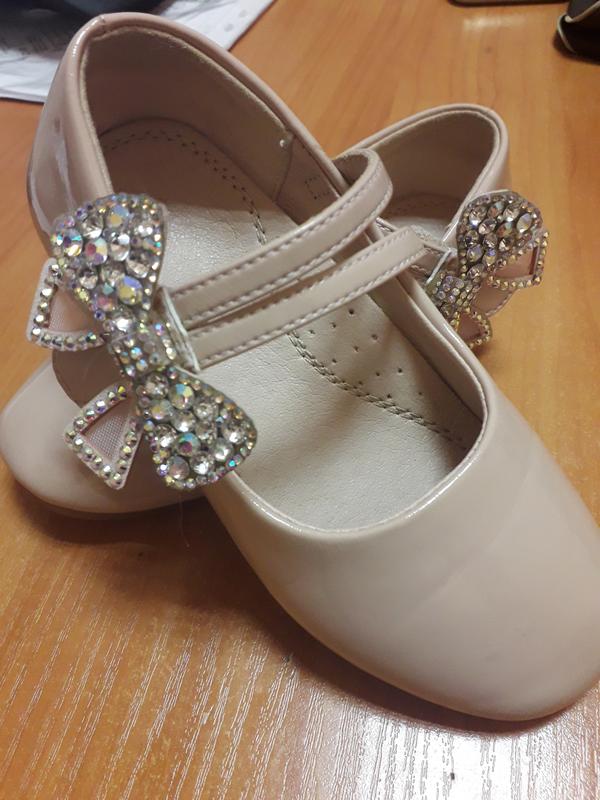 Очень красивые и удобные лаковые туфельки с бантом в камнях,размер 29