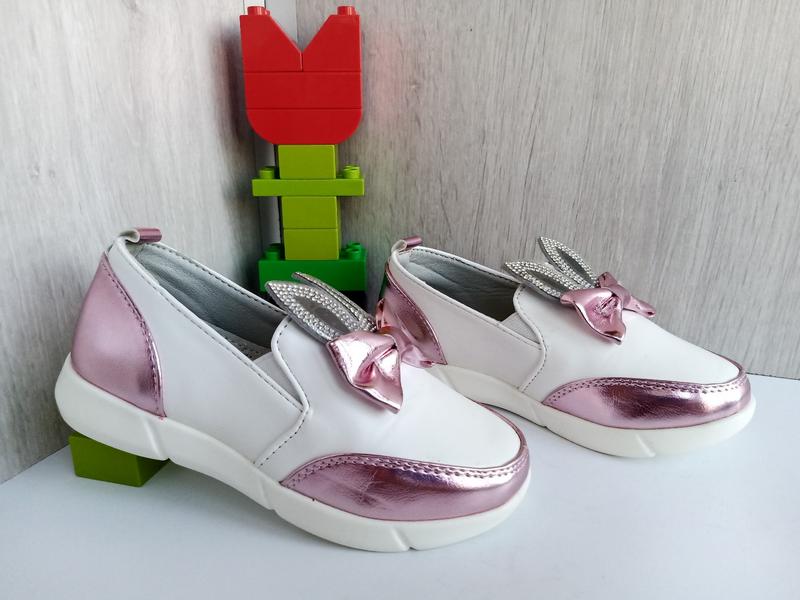 Очень красивые слипоны для девочек. Верх - кожзам. Стелька кожаная + супинатор. По бокам есть резиночки для фиксации на ножке. Замеры: 26-16,4 см Возможна погрешность в замерах +-2 мм