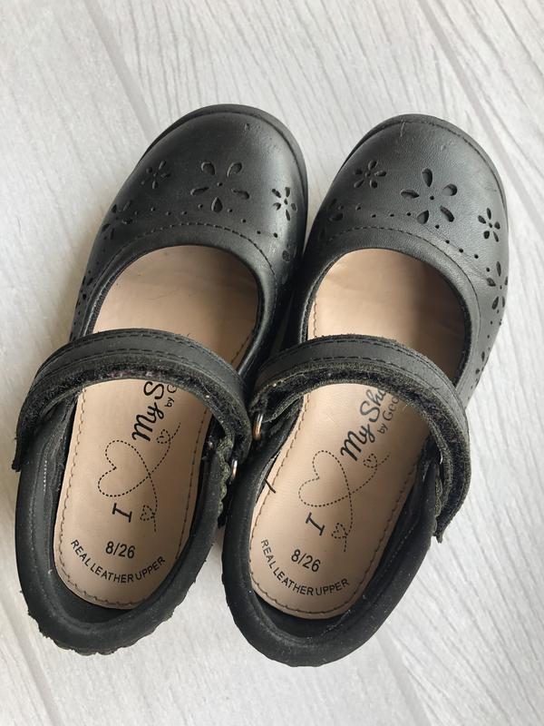 Кожаные черные туфли George 26 размер - Сахаристка 16 см телу на липучке. Состояние хорошее, видно на фото, кожа внутри и снаружи