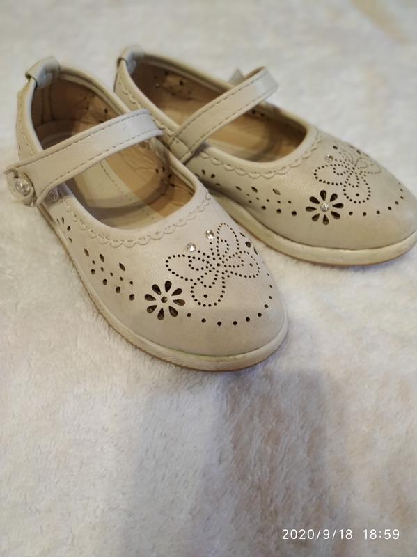Ніжні, святкові туфельки для дівчинки бежевого кольору. Носили мало, стан ідеальних (лише один нюанс - донька намалювала ручкою сердечка на устілці ))))під час носіння не видно). По устілці 17 см. Відправлення Новою та Укрпоштою після передплати.