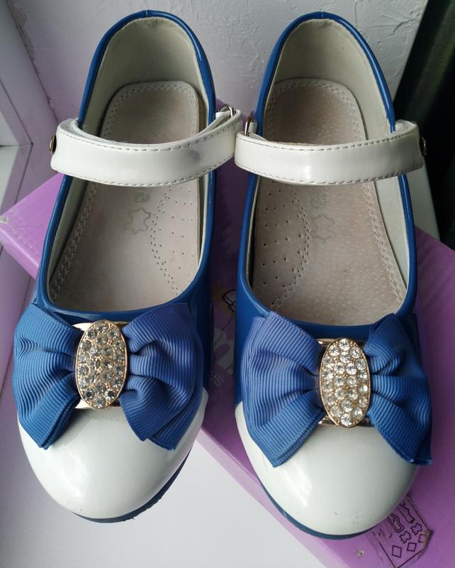 Туфлі для дівчинки ошатні лаковані білі блакитні