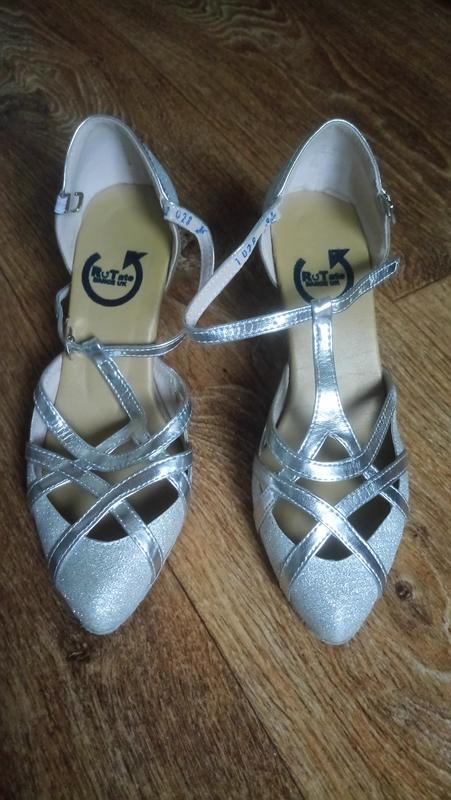 Туфлі для танців на маленьку ніжку р.35. Колір срібло, устілка 22,5 см , каблук 6, 5 см, супінатор. Європейський розмір 3 . Підошва і каблук замш.Виробник Англія. Стан нових. Висилаю будь якою поштою.