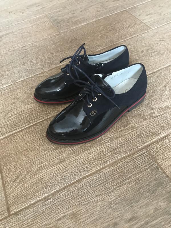 Стильні, класні туфлі. Купувала для доньки так і не носила , переросла. Колір темно-синій .Стелька шкіряна із ступенатором, довжина 21.см