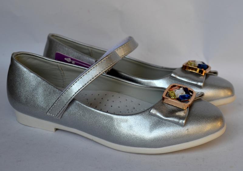 Нарядные серебристые туфельки для девочки тм Tom. m Верх - искусственная кожа, стелька - натуральная кожа. Стелька с супинатором. Реальные замеры по стельке в см: 31 размер длина стельки 20,0 см 32 размер длина стельки 20,5 см 33 размер длина стельки 21,5 см 34 размер длина стельки 22,0 см 35 размер длина стельки 22,7 см 36 размер длина стельки 23,5 см