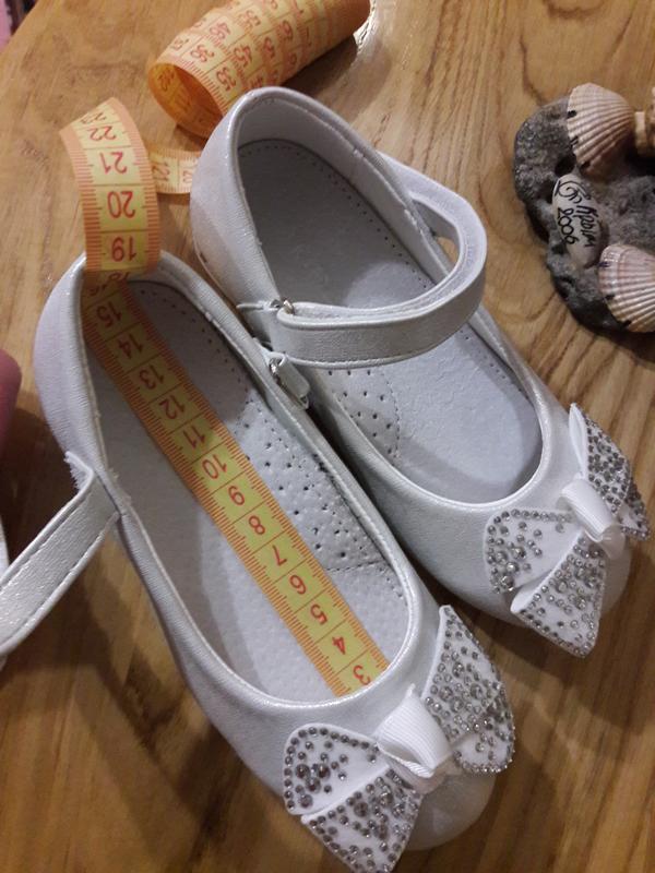 Туфельки на дівчинку. Розмір 28, але маломірять. На худеньку ніжку. Одягали 1 раз на свято в садочку. Стан ідеальний! Стелька шкіряна.