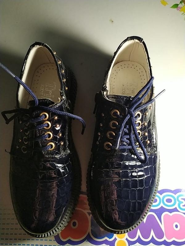 Для стильної девченки... дуже стильні, повністю натуральні і зверху і всередині шкіра, закриті туфлі, шкіра під рептилію. темно синього кольору, лак! розмір 32 є супінатор. фірма Tripot kids shoes, дуже якісна взуття! купували дуже дорого, одягали один раз.