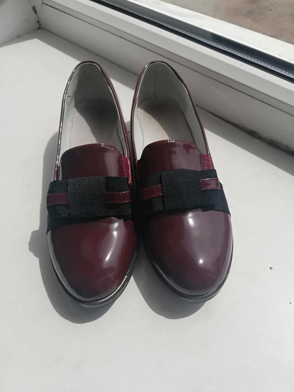 Красивые лаковые туфли 35 размера, цвет гнилой вишни. Вживую очень красивый, особенно на солнце. Состояние отличное, носили мало. Есть небольшой каблучок 2 см.