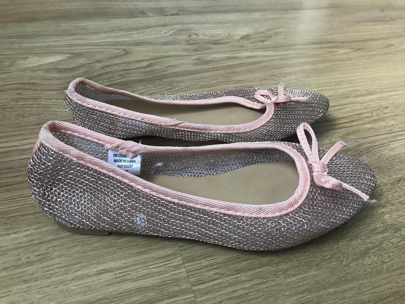 Красивые нарядные балетки. Легкие, очень удобные. Хорошо садятся и отлично смотрятся. Размер 33-34, длина стельки 21см.