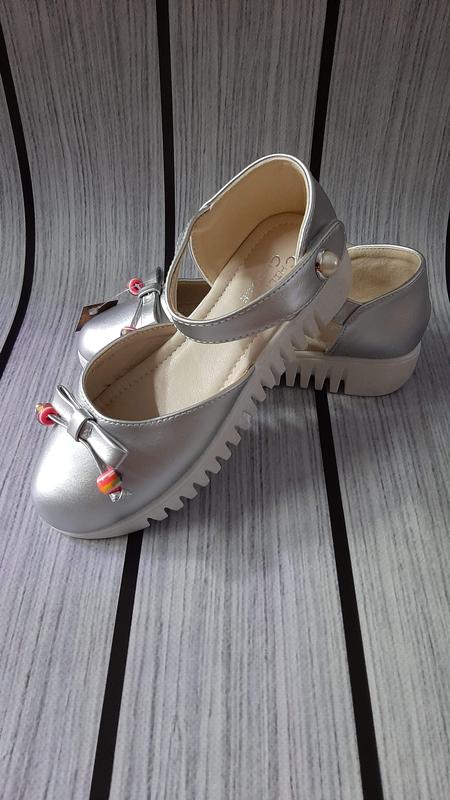 класснючие туфельки на принцессу в цвете серебра материал:качественная экокожа сбоку жемчужина на липучке размер: 33-20 см 34-20,5 см 35-21,5 см 36-22 см