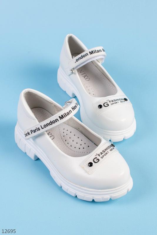 ДОСТАВКА ТІЛЬКИ НП ❗ ВІДПРАВЛЕННЯ ЗІ СКЛАДУ НАЯВНІСТЬ УТОЧНЮЙТЕ Туфлі для дівчаток Бренд - W. Niko Колір - білий Доп. інформація - еко шкіра, супінатор, підошва піна Розмірна сітка: 27-32 Заміри по устілці: 27 розмір 18,3 см 28 розмір 19 см 29 розмір 19,5 см 30 розмір 20 см 31 розмір 20,5 см 32 розмір 21 див. лисеня