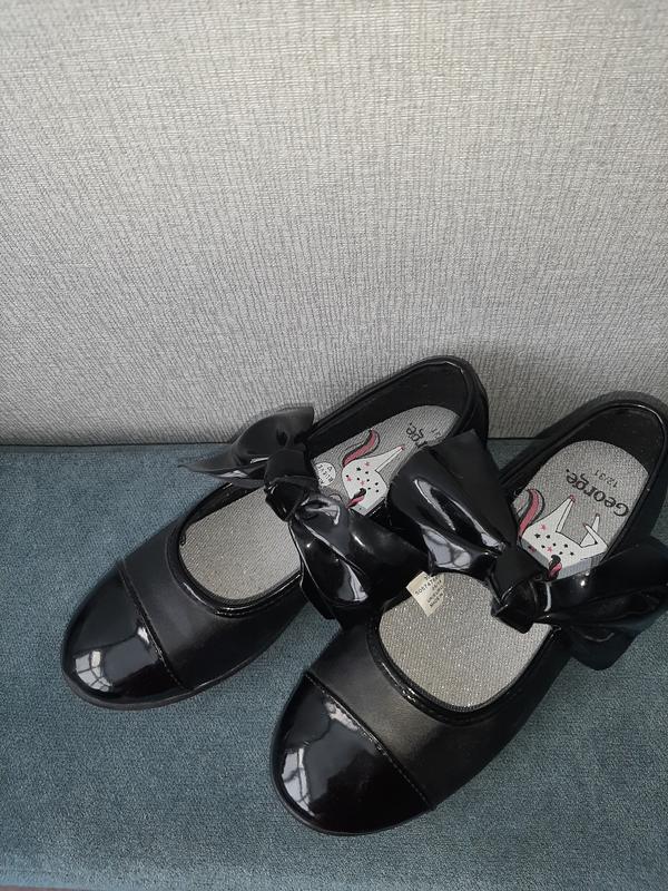 Шкільні туфельки 31 розміру,з милими бантиками,є нюанс на одному з бантиків (див.фото) на ніжці зовсім не помітно.устілка 19 см