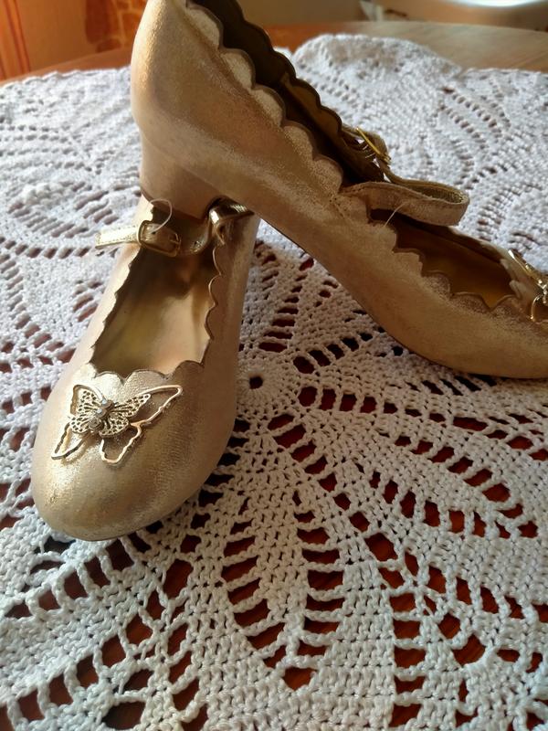 яркие новые нарядные туфельки известного бренда, цвет золота, размер указан 37, длина стельки 23