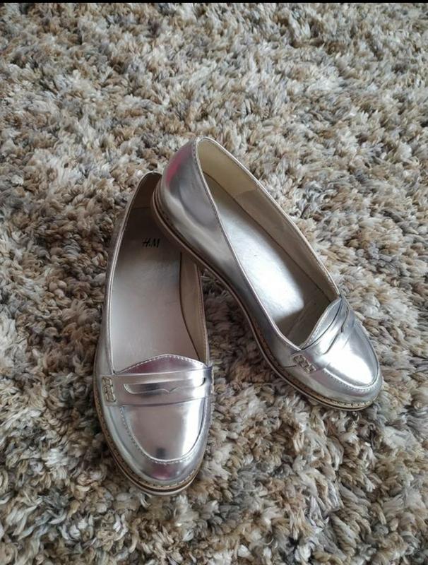 Зручні, стильні сріблясті лофери H&M, ідеальний стан, екошкіра, р.36( 23см)