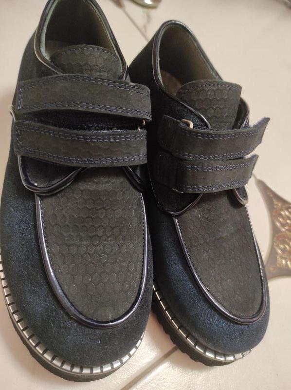 Туфельки на липучке. Подойдут как для мальчика так и для девочки. Полностью кожа, ортопедическская стелька. Новые. По стельке 21 см.