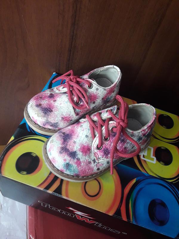 Яскраві туфельки у квітковий принт,трішки збиті носочки, але за рахунок малюнку, майже не помітно.