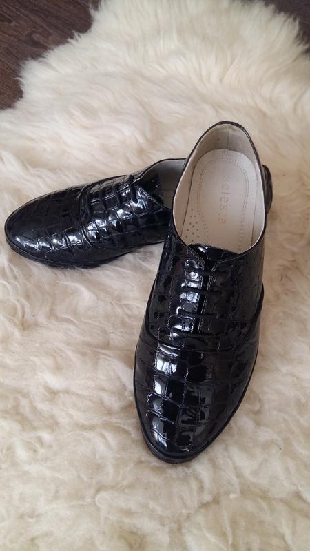 Демисезонные ботинки из натуральной лаковой кожи в идеальном состоянии (все видно на фото). Одевались один раз, не подошли по размеру. Размер 36. Маломерки. Реальный размер 34,5-35. Цвет: темно-синий, почти черный. На солнце виден синий оттенок.