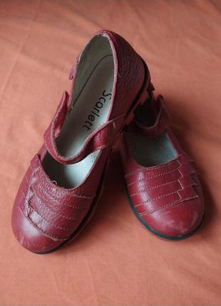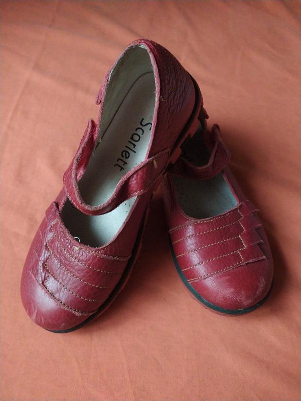 Туфельки для девочки размер 33, стелька 21 см Туфкльки тёмно красные, кожа, стелька супинатор В хорошем состоянии. Носки немного потёрты, на фото . Липучки рабочие