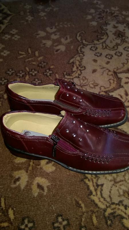 Абсолютно новые, не ношены, покупались 2 размера подряд 32 и 33, так вот 33 пролежал в шкафу, а сейчас уже не подходит. Была бирка на замочке, оторвали. Верх- искусственная кожа, середина - кожа с ортопедической стелькой 19,5 см. Подошва прочная резина. Красивая моделька. Цвет темно - вишневый.
