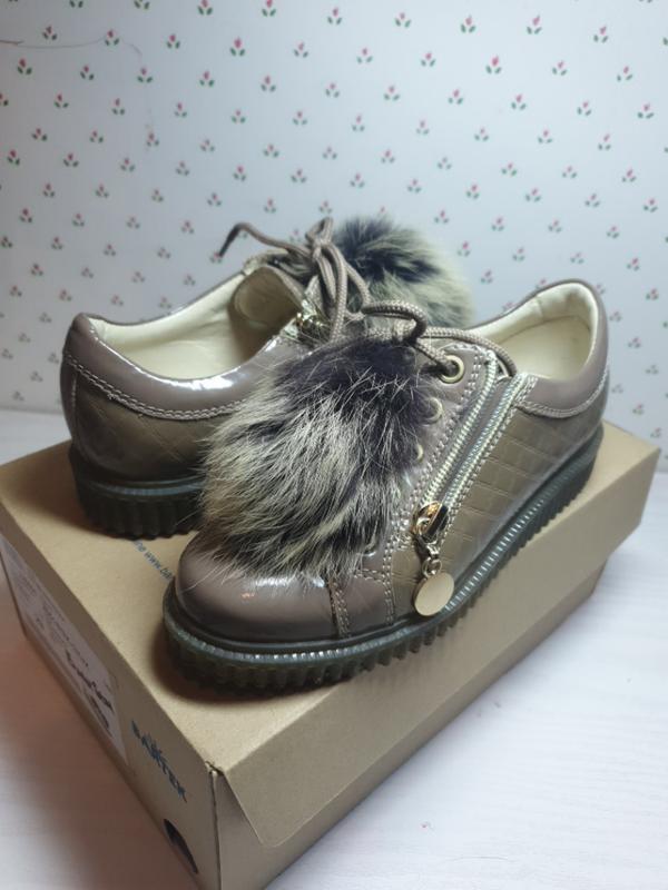 Лакові бежеві туфлі з хутром, який виймається бренду Bartek. Абсолютно нові, взувалось один раз. Розмір 29. Довжина по стільці 19,5 см