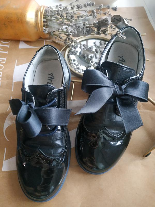 Туфлі одягалися всього 2 рази. Бантики і шнурки гумки робила сама, так і залишу - в коробці будуть нові шнурки які були спочатку. Дефектів немає. Виглядають стильно і дуже красиво, зручні, не важкі, підошва не ковзає. по устілці 20.5 див.