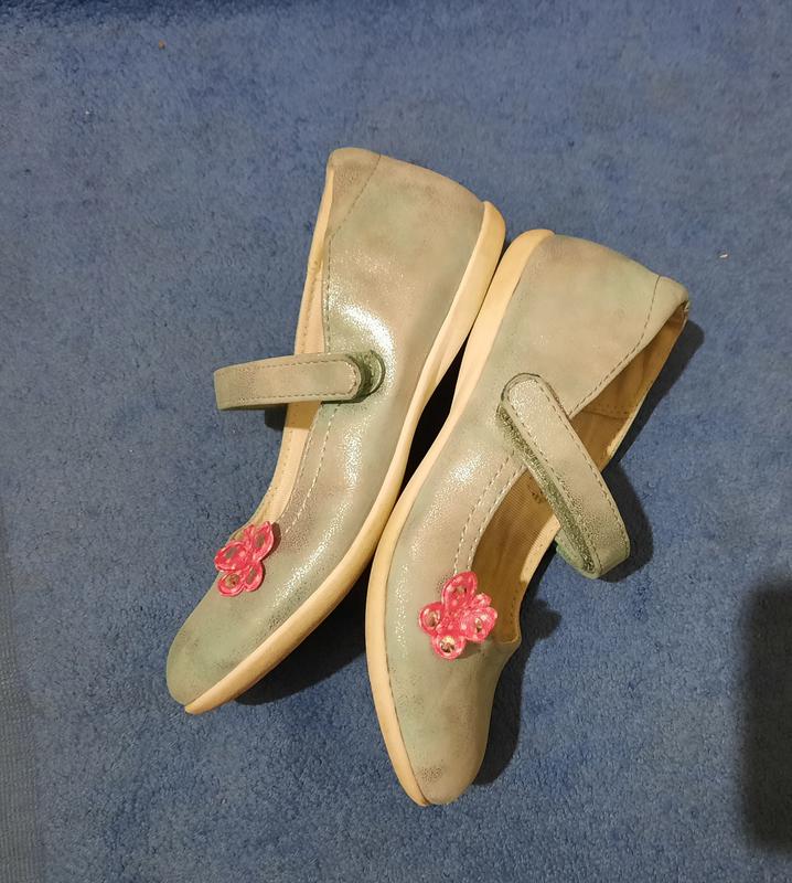 Туфельки гтлубого перламутрового цвета. Подойдут под комтюм Снежинки, Эльзы. Кожзам. Обуты 1 раз, есть небольшая царапинка на одном, но ее почти не видно. Стелька- 16,5см.