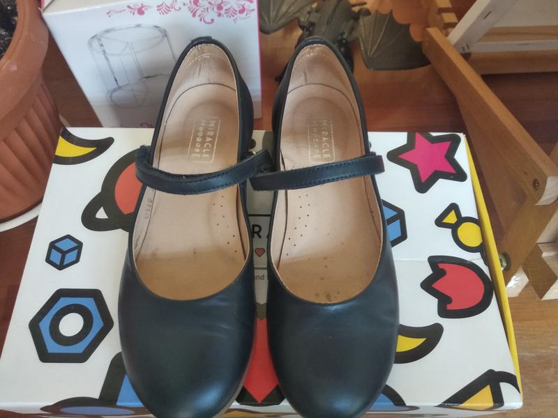 Туфлі темно-синього кольору (натуральна шкіра) ТМ Miracle Me ( Україна). Якість супер! Розмір 32 ( по устілці 20.5). У відмінному стані, т. к. одягали рідко. Дуже зручні, легкі, практичні і підійдуть під будь-який наряд. Ремінець на липучці. Підошва з еластичного матеріалу - термоеластопласту. Можливий розумний торг.