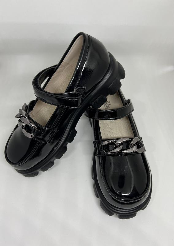 Шкільні туфлі на дівчинку. Матеріал верху штучний лак, підошва тракторна, устілка з супінатором. Розмірна сітка : 28 р. - 18 см , 35 р. - 21,5 см